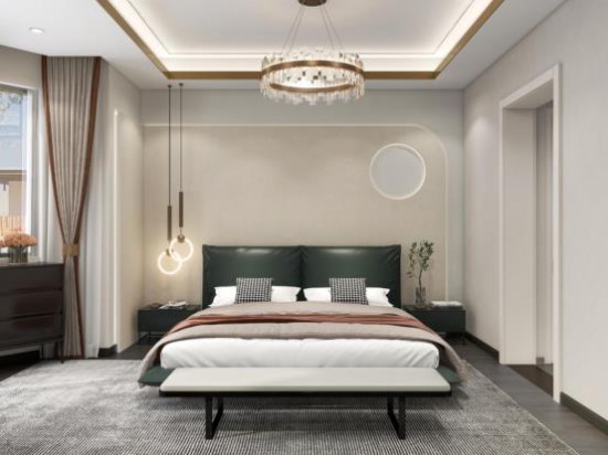 利用空間的格局優(yōu)勢,主臥打造出一個半弧形陽臺,流暢的曲線增強視覺柔美感,室內(nèi)外得到打通,引景入室,增添空間的自然意蘊。
