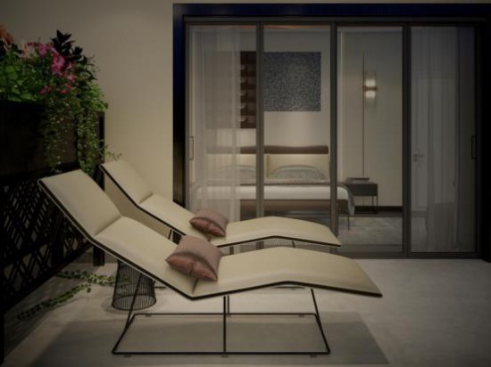 主臥延伸出來一方小陽臺,兩張CBD家居·金豹 | J002休閑椅打造出一處居家度假天地,考究人體工學的設計,有力承托軀體,釋壓放松,平凡的生活也充滿歡愉。