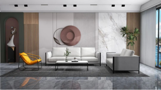 比如,將大理石元素運用于客廳,鋪貼在背景墻上(一整面墻或是局部),自然的紋理、純凈的底色,可以讓這個兼具會客功能的生活區(qū)域更具品質感與格調,美觀大氣。