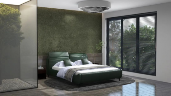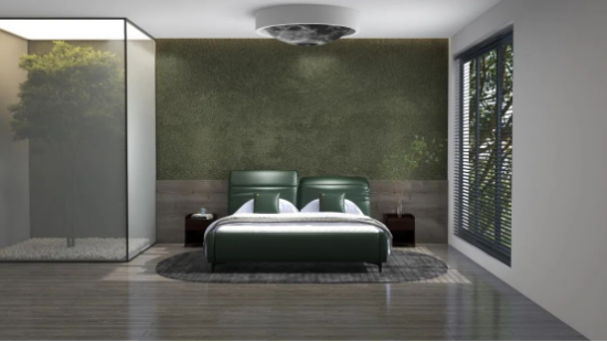 深綠泛青謂之蒼綠,色調(diào)溫雅平和,為臥室?guī)盱`動的自然意趣,與同為綠色系的背景墻呼應(yīng),更添雅致。